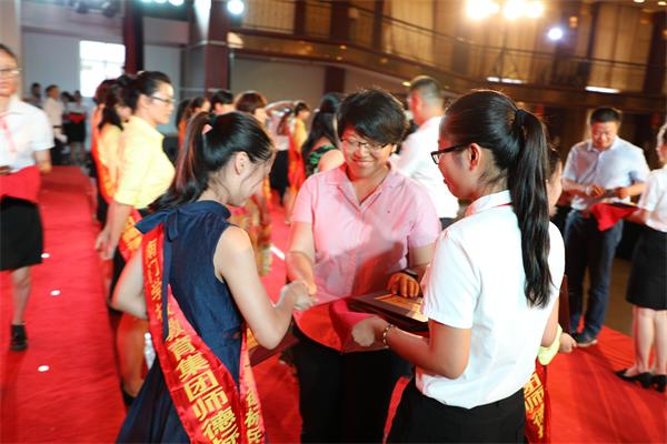 为进一步提高教师队伍职业道德水平,弘扬优秀教师爱岗敬业、教书育人的无私奉献精神和高尚师德,9月8日下午,南门学校教育集团在东方国际大酒店附属三楼举行庆祝第33个教师节暨表彰大会。中共城厢区委常委、宣传部部长吴建銮同志、区人大副主任王乌妹同志、区政协副主席林素香同志、区委组织部副部长林祖宪同志、霞林街道党工委书记陈国忠同志、区教育局副局长陈进同志、城厢区南门社区党委书记方娟娟同志、南门学校名誉校长陈卫国同志、南门学校教育集团校长、书记及各成员校校长、书记、园长们,全体教职工共900多人参加了大会。