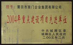 南门大酒店荣获“2003年度重点建设项目先进单位”