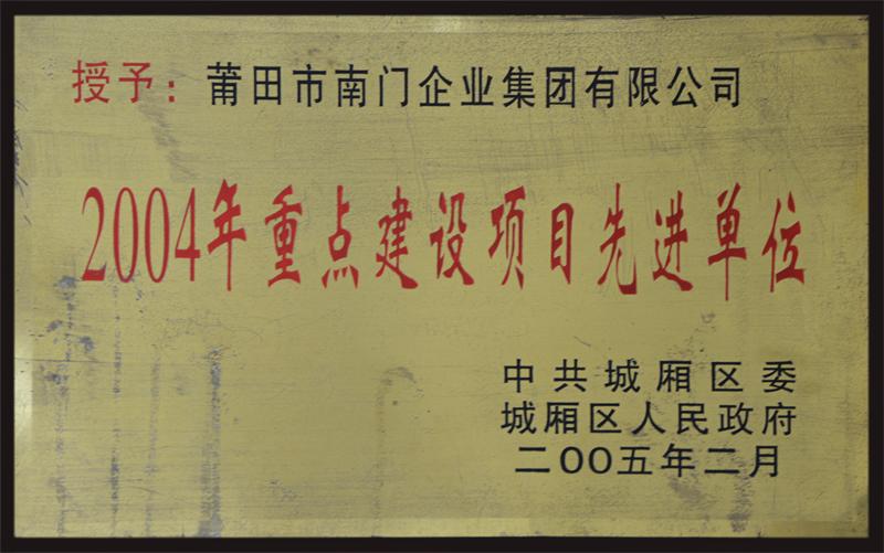 南门企业集团荣获“2004重点建设项目先进单位”