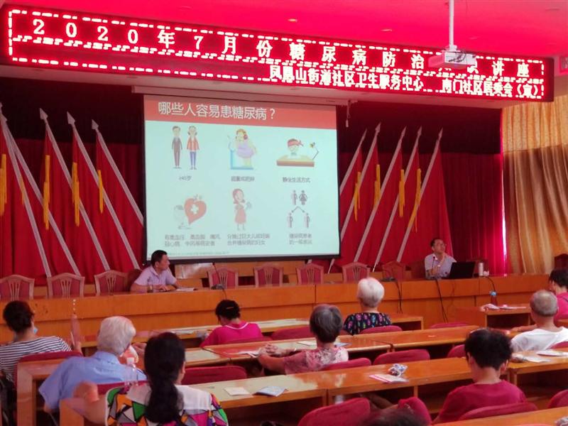 近日,由凤凰山街道社区卫生服务中心、南门社区居委会在社区会议室联合举办了糖尿病防治知识讲座,50余名老年人参加了此次讲座。 来自城厢区医院的主治医师洪玉清担任讲座主讲人,洪医生从什么是糖尿病、哪些人容易患糖尿病、正确控制血糖、低血糖症状与防治等几个方面向与会人员做了详细讲解,他建议老年人可以通过饮食调控、血糖监测、适当运动、药物治疗、心理教育等自我管理方法做好糖尿病防控,保持身体健康。 会前,工作人员还向老年人发放了《掌握知识是关键——糖尿病讲座》、《中国公民健康素养66条基本知识与技能》、《高血压预防与日常保健》等健康知识宣传手册。